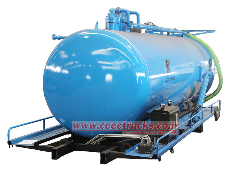Unité de camion-citerne à vide de 12 000 L (également appelée cabine supérieure de camion-citerne à vide de 12 m³, superstructure de camion-citerne à vide de 12 000 litres, kit de cabine supérieure de camion-pompe pour fosse septique, cabine supérieure de camion d’aspiration à vide, kit de camion d’aspiration des eaux usées à vide de 12 m³) Monté sur un châssis de véhicule, il absorbe et collecte les liquides tels que les eaux usées, les boues, les sédiments de fosses septiques, le pétrole brut et les petits débris solides, comme les cailloux. Il est largement utilisé pour le nettoyage des égouts, des fosses septiques et des fossés, et joue un rôle essentiel dans l'assainissement municipal et la gestion environnementale.