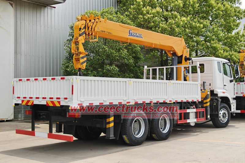 Le véhicule est modifié sur le châssis HOWO, équipé d'un moteur WEICHAI WP10.380E22 380HP, puissant, associé à une transmission à engrenages HW19710, un changement de vitesse en douceur et une grue XCMG GSQS300 à l'arrière de la carrosserie du véhicule, avec une grande capacité de levage et une grande portée, et une boîte de chargement de 6500 × 2300 × 450 mm en dessous, qui peut facilement transporter des objets lourds soulevés par le crochet de la grue.
