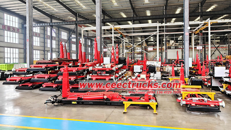 Optional 3-20 ton hook arm deviceLa superstructure du chargeur à bras articulé de 6 tonnes est un chariot amovible principalement utilisé pour la collecte et le transport des déchets urbains, des déchets de chantier et des déchets ménagers. Elle se compose d'un bras articulé, d'un système hydraulique, d'un mécanisme de verrouillage et du chariot. Le chargement, le déchargement et le vidage du chariot sont assurés par la force hydraulique. Le chariot se détache rapidement du châssis pour faciliter son recyclage et optimiser le transport.