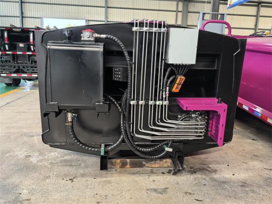 Ce kit de carrosserie personnalisé violet pour benne à déchets de 8 m³ à chargement arrière est conçu sur la base d'un châssis de camion ISUZU local de Manille, aux Philippines. Il est équipé d'un système hydraulique complet et de plusieurs dispositifs permettant son fonctionnement. Détails ci-dessous :