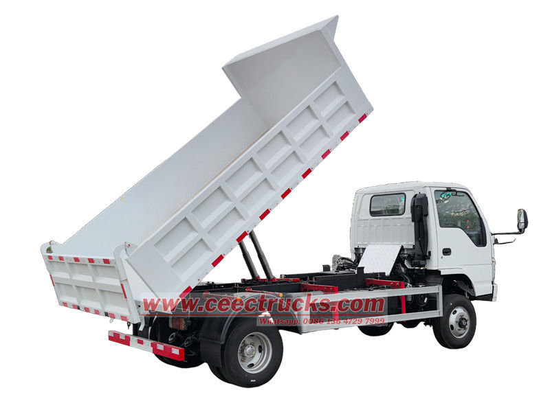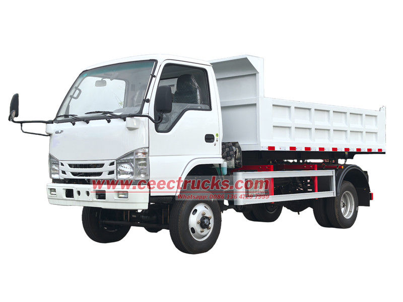 Petit camion à benne basculante Isuzu ELF 2 tonnes également appelé camion à benne basculante Isuzu NKR, camion à benne basculante Isuzu ELF, camion à benne basculante à moteur Isuzu 120HP, camion à benne basculante Isuzu ELF, etc.