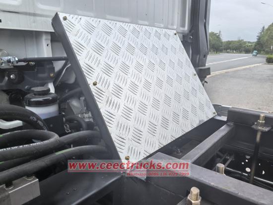 Le petit camion-benne Isuzu est principalement composé d'un châssis, d'un système de levage hydraulique, d'une benne et d'un système de commande. La benne est soudée avec des plaques d'acier haute résistance, et sa partie arrière est dotée d'un crochet de verrouillage automatique pour assurer l'étanchéité pendant le transport. Le système hydraulique comprend une pompe à huile, un vérin hydraulique multi-étages, une vanne de régulation et un réservoir de carburant. La levée et l'abaissement de la benne sont commandés par un joystick en cabine.