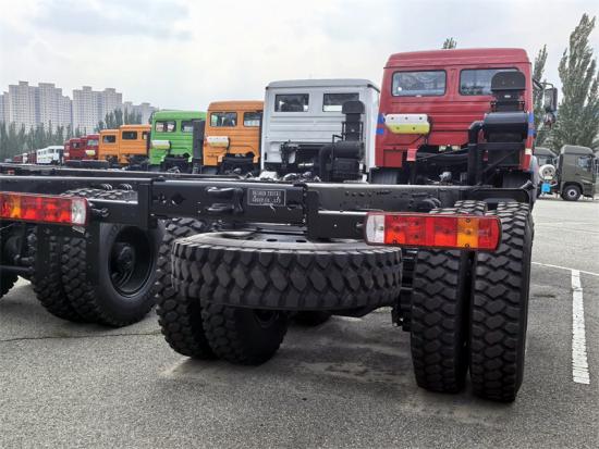 Le châssis du camion cargo Beiben 6x6 à transmission intégrale utilise le châssis à cabine longue Beiben NG80B 2642APZ avec un empattement de 4 450 + 1 450 mm. Il est équipé d'un moteur Weichai WP12.420E32, d'une boîte de vitesses Fast 12JS200TA, de pneumatiques 12.00R24, d'une transmission intégrale 6x6, d'une direction assistée hydraulique ZF8098, d'essieux Mercedes-Benz, de freins pneumatiques à double mâchoire de 7 tonnes sur l'essieu avant moteur, de freins pneumatiques à double mâchoire de 18 tonnes avec réducteurs de moyeu et d'un essieu arrière à double réduction, capable de supporter une charge utile allant jusqu'à 40 tonnes.