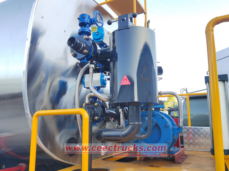 ● Système de pompe à huile : Le camion épandeur d'asphalte Howo 4x2 est équipé d'une pompe à huile pour pomper l'asphalte du réservoir de stockage et le transférer vers le système de pulvérisation. Ce système de pompage est à entraînement hydraulique, garantissant stabilité et fiabilité.