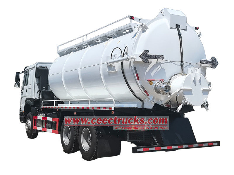 ● Le camion-citerne à vide Howo de 20 000 litres est équipé d'un système de commande hydraulique pour une utilisation simple et flexible. Le conducteur ou l'opérateur peut effectuer les opérations d'aspiration et de déchargement par simple pression sur un bouton ou un levier.