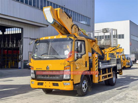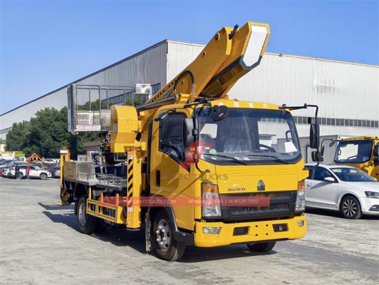 Insulation bucket can be achievedLe HOWO 18m aerial platform truck is a professional engineering special truck that integrates excellent technical performance and safety design. Built on the Howo light duty chassis, the truck is equipped with a ISF3.8s3154 engine with a maximum output power of 154 HP and a total vehicle mass of 8 300kg, which is flexible and powerful. The Howo light duty aerial platform truck has a maximum working height of 18 meters and a maximum working radius of 6 meters, and adopts a hydraulic static balance system to ensure stability.