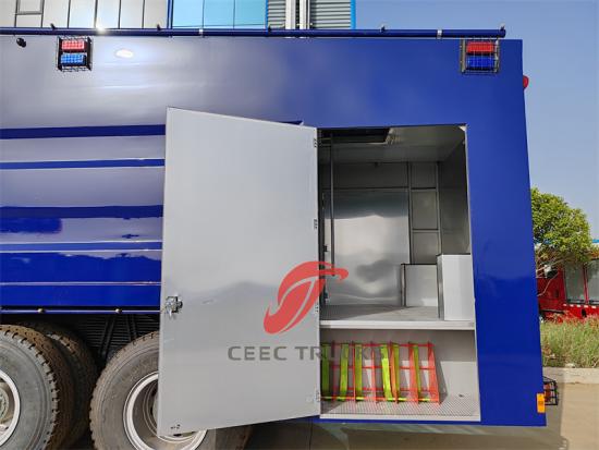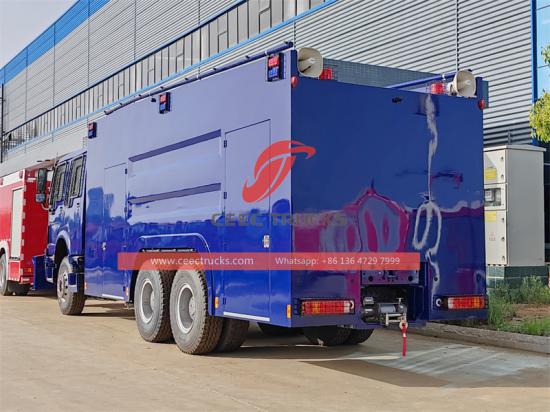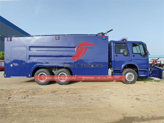 High-strength aluminum alloy or titanium alloy framesVéhicule anti-émeute avec canon à eau Howo 6x4utilise une conception antidéflagrante complète des matériaux, des structures et des systèmes pour garantir une exécution sûre et efficace des tâches dans des environnements extrêmes.