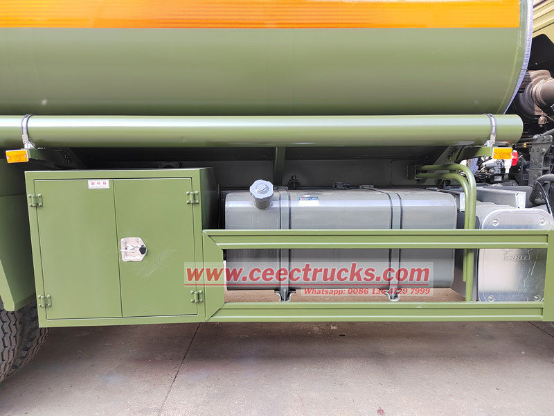 4x4 8x8 drive avaiableLe camion-citerne militaire HOWO 6x6, également appelé camion-citerne, est un équipement essentiel pour le transport et l'approvisionnement en carburant. Basé sur le châssis du camion, il est équipé d'un grand réservoir de stockage de carburant. Robuste et étanche, ce réservoir peut contenir une grande quantité de carburant. Il est équipé d'équipements de base, tels qu'un système de pompage et un ravitailleur, permettant d'alimenter en carburant avec précision et efficacité divers véhicules, équipements techniques et machines. Par ailleurs, pour garantir la sécurité, Camion distributeur de carburant mobile HOWO est également équipé d'un dispositif antistatique, d'une valve respiratoire, d'un extincteur, etc.
