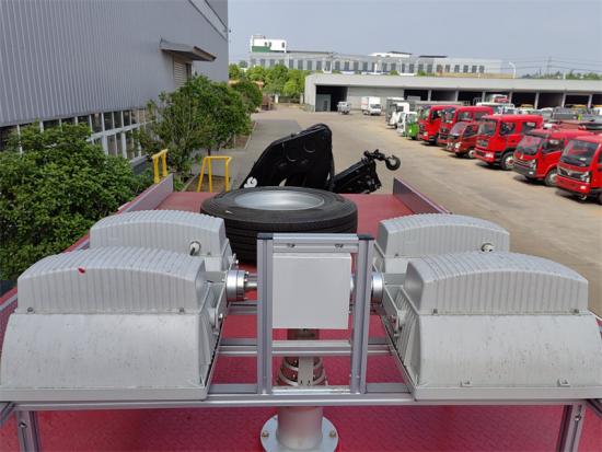Le camion de pompiers Howo à éclairage d'urgence, construit sur le châssis haut de gamme Howo C5H, allie puissance supérieure et faibles émissions polluantes. Grâce à sa transmission intégrale, il peut affronter toutes les conditions routières, même les plus difficiles. Équipé d'un groupe électrogène et d'un système d'éclairage d'urgence indépendants, il offre un éclairage multi-angles à 360° permettant d'éclairer rapidement les voies de secours en cas d'incendie. Le panneau de commande propose plusieurs langues et diverses configurations optionnelles pour répondre à tous les besoins. Le camion de pompiers Howo est également équipé d'une grue à flèche repliable de 6 tonnes à l'arrière pour le levage de charges lourdes. 3 Une tonne et un câble de remorquage électrique de 35 m sont situés à l'avant de la cabine.