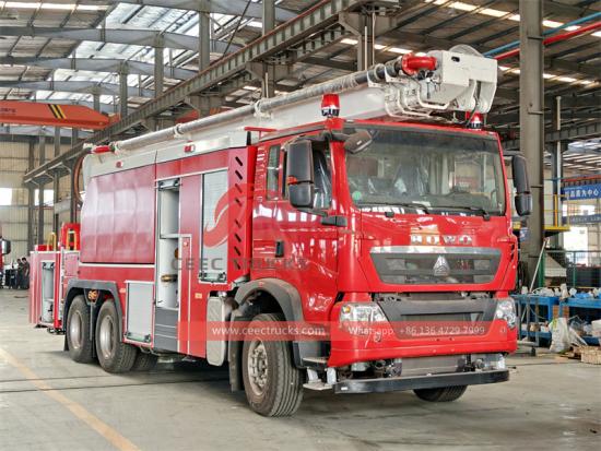 8000L stainless water tank,32m high reach extendable turretHowo 6x4 haut atteindrePrise de force camion de pompiers howo avec tourelle extensible à grande portée a le