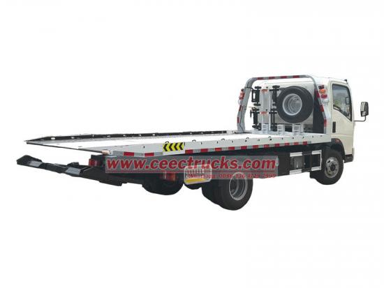 La dépanneuse à plateau légère Howo est un véhicule de dépannage professionnel, adapté au châssis léger Howo RHD, avec un empattement de 3 360 mm, la climatisation, le port USB et l'assistance directionnelle. Elle est équipée d'un moteur diesel Cummins ISF3.8S3141 de 141 ch, 4 cylindres en ligne. Elle dispose d'une plateforme de chargement de 4 tonnes, d'un treuil de 21 m et d'un support de roue.
