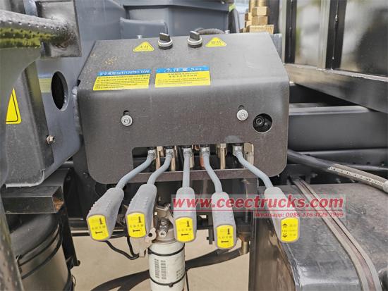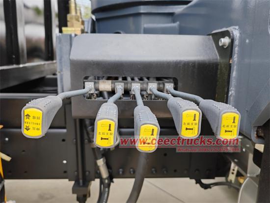 Le véhicule est basé sur un châssis HOWO 4x2 Classe II, avec un empattement de 4 500 mm, prenant en compte la stabilité de charge et la praticabilité. L'empattement court réduit le rayon de braquage, ce qui le rend idéal pour les routes urbaines étroites ou les chantiers complexes. Le châssis adopte un cadre en acier haute résistance, avec une charge sur l'essieu avant de 6,5 tonnes et une charge sur l'essieu arrière de 11,5 tonnes, garantissant résistance à la torsion et durabilité sous forte charge.