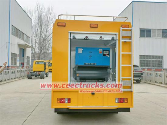 3. Système d'alimentation haute puissance : le camion de pompiers de sauvetage mobile Isuzu est équipé d'un générateur modèle HONDA SHT11500 japonais importé avec armoire de commande, qui peut fournir une puissance de 11,5 kW 220 V et 380 V, ce qui peut répondre aux besoins d'un grand nombre d'équipements électriques fonctionnant en même temps.