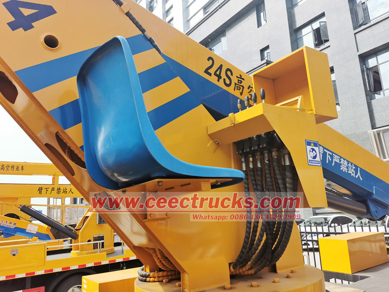 Camions CEEC Trucks Hydraulic Aerial Platform Camined monté sur le châssis de camion Double Row 4x2 de type II, monté avec 4 portes et 2 rangées en totalement 2 + 4 sièges, les bras télescopiques peuvent atteindre 24 mètres de hauteur des opérations aériennes, largement utilisés dans l'entretien de la rue, les travaux d'aménagement paysager, la vidéo télévisée, l'ingénierie des communications, l'aéroport, la décoration, la publicité aérienne et d'autres zones de besoin