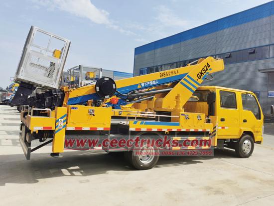 | Camion Isuzu Manlifter avec boîte de commande et siège | Camion de plate-forme aérienne ISUZU 24m avec système de câble pour mémoriser la hauteur |