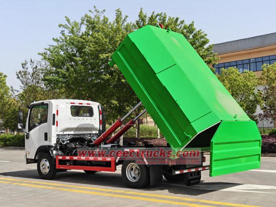 Caractéristiques : Le camion poubelle à bras à crochet Isuzu ELF présente les avantages d'une structure raisonnable, d'une utilisation facile, stable et efficace, de bonnes performances d'étanchéité et d'un déversement pratique.