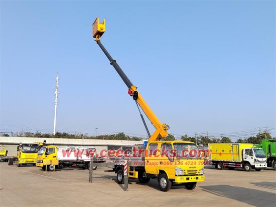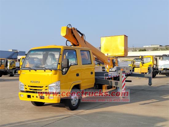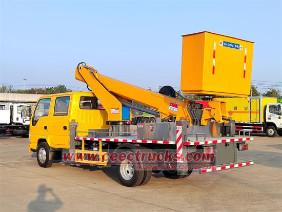 Camions CEEC produits ISUZU 12M 4KH1N6MD 140HP TRUCHER AERIER Conçu pour s'appuyer entièrement sur les avantages du châssis à double cabine d'Isuzu japonais d'origine avec 2 + 4 sièges, considérez entièrement la commodité et la fiabilité du produit Les bras de travail sous la forme de trois niveaux, les avantages du véhicule d'une grande zone de travail qui peuvent être jusqu'à 16 m, peuvent s'adapter aux exigences de différentes conditions de travail Système du groupe motopropulseur utilisant la transmission hydraulique montée sur la selle de rotation et le seau de rotation d'allumage chacun avec un système d'exploitation séparé, les priorités du système de fonctionnement puis les opérations du seau Le camion de plate-forme aérien à double cabine ISUZU équipé d'une protection de débordement, d'une puissance d'urgence, d'un verrouillage des cylindres et d'autres dispositifs de sécurité pour assurer les opérations de sécurité.