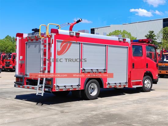 4×4, RHD is optionalCe camion de lutte contre l'incendie est construit sur le châssis double cabine ISUZU NPR, robuste et léger. Il allie puissance et émissions respectueuses de l'environnement, et peut affronter tous types de routes difficiles. Il est équipé d'un réservoir d'eau grande capacité de 3 000 litres et d'une pompe à incendie professionnelle, avec une longue portée de pulvérisation et un panneau de commande multilingue en option. Il offre également diverses configurations de lutte contre l'incendie pour répondre à différents besoins. Camion de lutte contre l'incendie à double cabine Isuzu NPR La cabine classique ELF à deux rangées offre un espace généreux et un environnement confortable. L'usine CEEC s'attache à fabriquer un châssis principal de haute qualité pour le chargement du matériel de lutte contre l'incendie et le maintien d'excellentes performances de conduite. La cabine peut accueillir cinq pompiers et est équipée de la climatisation pour garantir le confort du conducteur quelles que soient les conditions météorologiques.