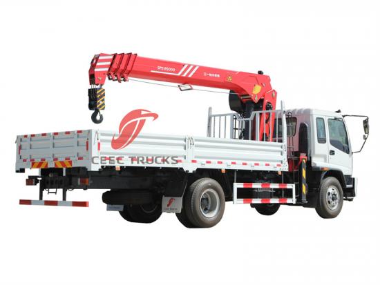 Customized to equipped with remote control deviceLe camion-grue Isuzu FTR est un véhicule puissant et bien conçu. Équipé d'un moteur diesel ISUZU de 205 ch, il répond à divers besoins. La cabine, climatisée et pouvant accueillir trois personnes, offre un confort de conduite optimal. La partie supérieure du camion-grue Isuzu FTR de 6,3 tonnes est équipée d'une grue à flèche télescopique d'une capacité de levage maximale de 6 300 kg et d'une rotation à 360°. La grue pèse 950 kg et dispose d'un espace d'installation de 850 mm. Le panneau de commande est disponible en anglais ou dans d'autres langues, ce qui répond aux besoins des utilisateurs. Le camion-grue Isuzu FTR propose également diverses configurations optionnelles, telles qu'une grue à flèche télescopique, une benne basculante hydraulique, une épaisseur et une hauteur de benne personnalisables selon les besoins, et un boîtier de commande à distance en option.