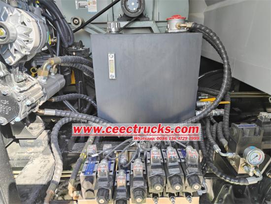 Le balayeur de route ISUZU FVR 12-CUBIC-METER est équipé d'un système d'eau à haute pression qui possède des spécifications techniques impressionnantes pour assurer un nettoyage efficace et efficiente La pression du système atteint 10 MPa, offrant une grande puissance pour exploser la saleté tenace et les débris La vitesse de rotation de la pompe à eau est de 1150 révolutions par minute, garantissant un flux d'eau cohérent et puissant