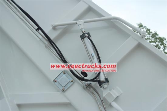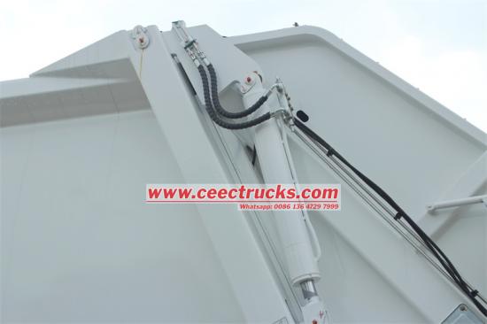 —— COMPARTIMENT DE GARBAGE: Le compartiment est composé de matériaux à haute résistance, de l'acier au carbone de haute qualité tel que de l'acier de manganèse Q345 et est formé par un soudage entièrement scellé Le volume varie de 4 mètres cubes à 20 mètres cubes La conception du compartiment comprend une structure d'arc, une plaque de poussée de compression bidirectionnelle, un réservoir d'eaux usées (volume ≥ 200L) et un dispositif d'étanchéité anti-fuite pour prévenir efficacement la pollution secondaire