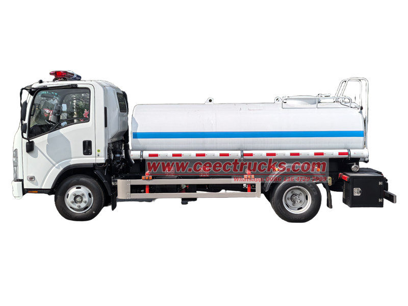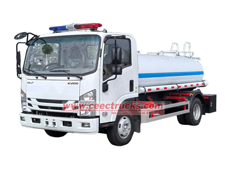 Le camion-citerne tractable Isuzu KV100 avec arroseur (également appelé camion-citerne à eau potable Isuzu) est utilisé pour le transport et l'approvisionnement en eau, qu'elle soit industrielle ou agricole. Son réservoir est traité non toxique ou en acier inoxydable.