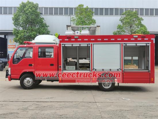 Le mini-camion de pompiers polyvalent ISUZU est doté d'un poste de conduite à deux rangées de 2+4 sièges, dont 4 sièges pour ARI. Il est équipé d'un moteur diesel 4KH1CN6LB de 88 kW et 120 ch, ainsi que d'une boîte manuelle MSB à 5 rapports (5 avant et 1 arrière). L'arrière du poste de pilotage est adapté à la lutte contre les incendies : plus de membres d'équipage, une puissance importante, de bonnes performances mécaniques, une structure et un agencement raisonnables, un dispositif d'éclairage télescopique, une utilisation et une maintenance aisées, et répond aux exigences des combats réels.