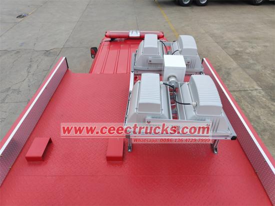 Front mounted with 4tons towing winchCamion de pompiers d'urgence de type mini Isuzuadopte le châssis de camion PT1073BUHAY de type II.Camion de pompiers Isuzuéquipé d'une cabine d'équipage à deux rangées de sièges, pouvant transporter 2+4 passagers, y compris le conducteur.Camion de pompiers multifonctionnel ISUZUConfortable et pratique à conduire, il est équipé du treuil électrique américain Champion d'origine, capable de tracter environ 4 tonnes de marchandises. Il utilise le générateur Honda japonais SHT11500 d'une puissance de 10 kW. Le toit est également équipé d'un système d'éclairage de levage YZH4-5.0CF, capable de soulever jusqu'à 7,6 mètres du sol. Le compartiment à équipements, en alliage d'aluminium, peut contenir pas moins de 90 équipements de secours.Camion de pompiers de sauvetage IsuzuDoté d'une apparence innovante, d'une conception scientifique et rationnelle, d'une utilisation pratique et d'un affichage complet des instruments, il est entièrement équipé d'accessoires et d'outils, et adopte des structures rotatives et de traction, une conception compacte et un accès facile, le rendant plus proche des besoins réels de lutte contre les incendies.Camion de pompiers Isuzu mini ELFest un véhicule spécial de lutte contre l'incendie idéal pour les forces de lutte contre l'incendie d'urgence et diverses équipes professionnelles de lutte contre l'incendie et de sauvetage.