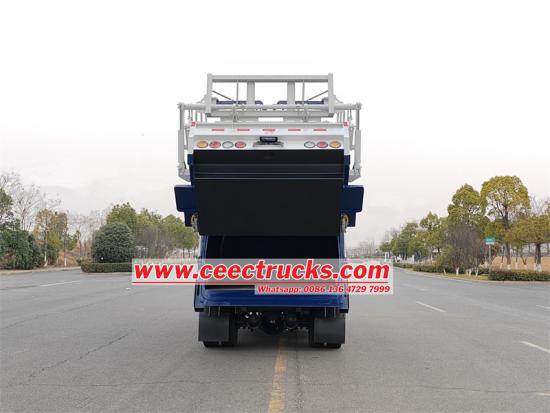 Le compacteur de chargeur arrière ISUZU 700p 10cbm de CEEC est utilisé pour la collecte et l'élimination des ordures Avec empattement 4175 mm, moteur 4HK1 190HP, émission Euro 6 diesel 5193 ml, boîte de vitesses ISUZU MLD 6-Shift, avec A / C, USB, assistance en direction, 3 sièges Le haut du corps est une poubelle de 10cbm, l'arrière est un mécanisme de retournement du seau, il existe 4 méthodes pour faire fonctionner le chargement et le déchargement du camion.
