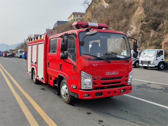4×4, RHD is optionalCe camion de lutte contre l'incendie est construit sur le châssis robuste et léger à double cabine ISUZU NPR. Il allie une excellente puissance à des émissions respectueuses de l'environnement, et peut affronter tous types de routes difficiles. Il est équipé d'un réservoir d'eau grande capacité de 4 000 litres et d'une pompe à incendie professionnelle, avec une longue portée de pulvérisation et un panneau de commande multilingue en option. Il offre également diverses configurations de lutte contre l'incendie pour répondre à différents besoins. Camion de lutte contre l'incendie à double cabine Isuzu NPR La cabine classique ELF à deux rangées offre un espace généreux et un environnement confortable. L'usine CEEC s'attache à fabriquer un châssis principal de haute qualité pour le chargement du matériel de lutte contre l'incendie et le maintien d'excellentes performances de conduite. La cabine peut accueillir cinq pompiers et est équipée de la climatisation pour garantir le confort du conducteur quelles que soient les conditions météorologiques.