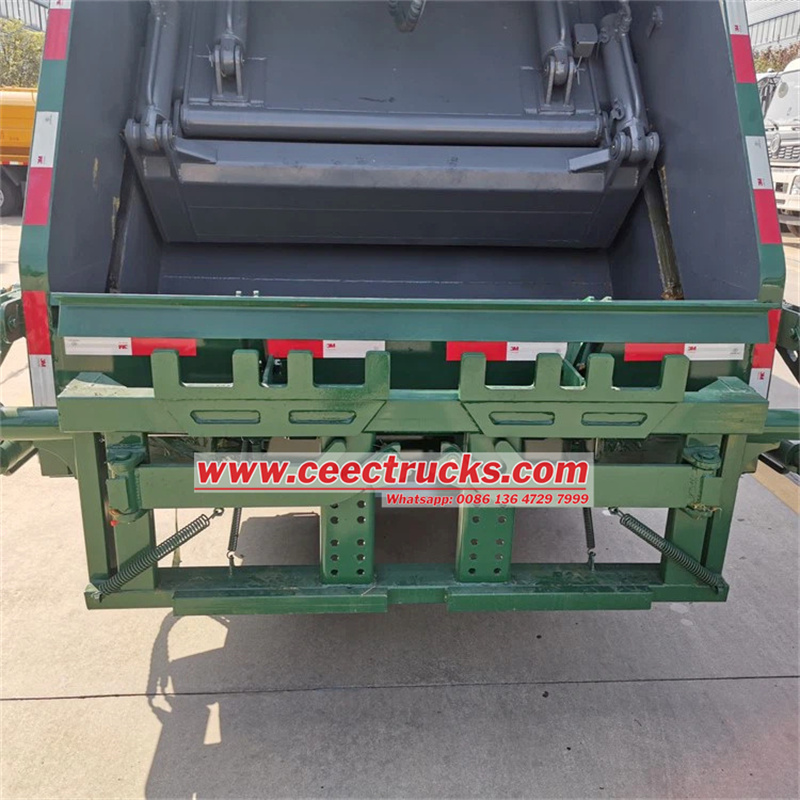 Le corps compacteur de notre Camion poubelle à chargeur arrière Isuzu est un nouveau type de structure sans rible avec une belle forme d'arc et un volume de compression efficace de 10 mètres cubes Le hayon est équipé d'un mécanisme de retournement, avec des modes de fonctionnement électroniques et manuels La boîte de commande est installée dans la cabine et à l'arrière du hayon Il y a une bande d'étanchéité en caoutchouc de 3 mm d'épaisseur à l'arrière et un réservoir d'égouts de grande capacité Le véhicule peut être imprimé avec des motifs et du texte en fonction des besoins des clients