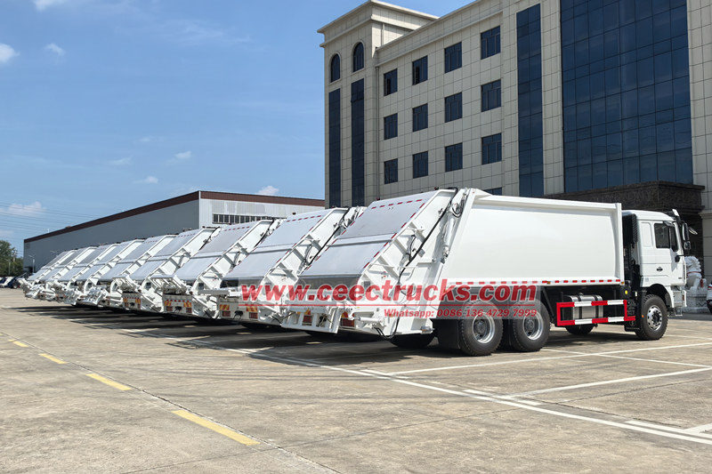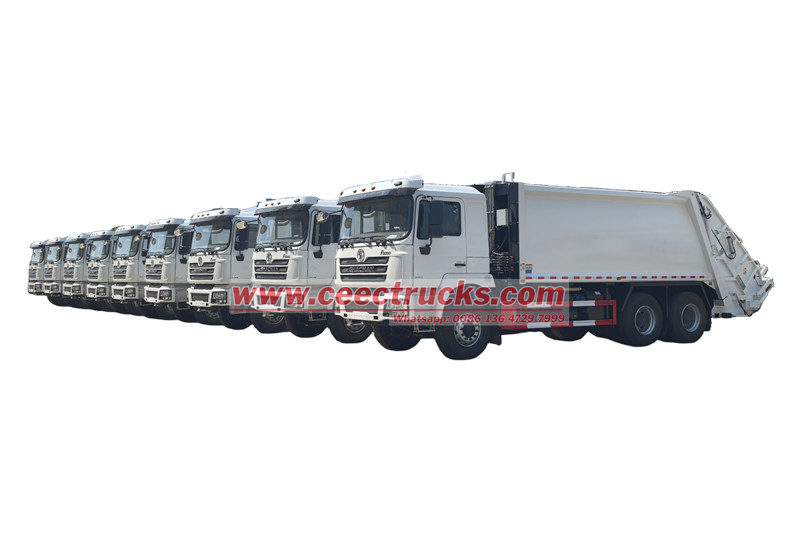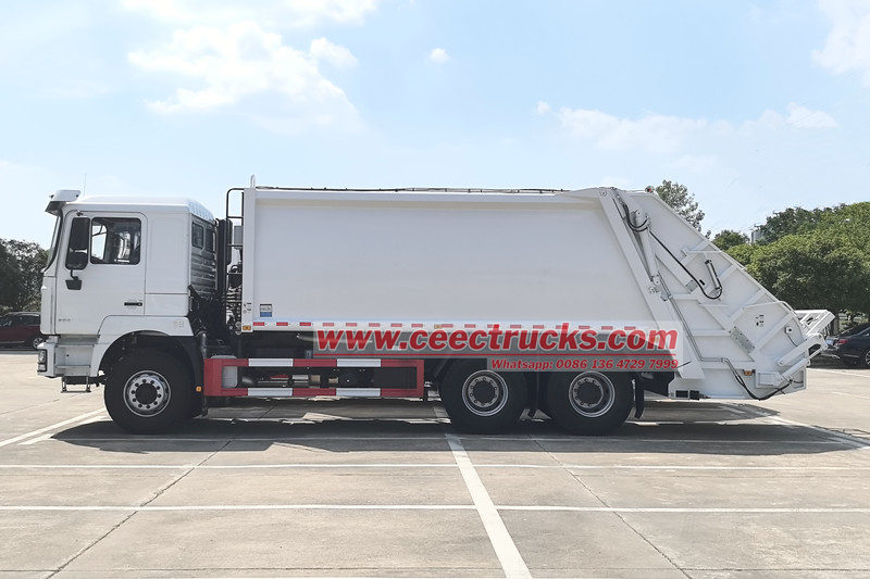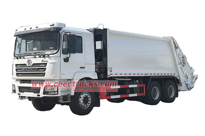 Camion à ordures à chargement arrière Shacman 25 m³ (également appelé camion de compactage des déchets Shacman 6x4, camion de collecte des déchets à chargement arrière Shacman F3000, camion compacteur à ordures Shacman 25 m³, camion à ordures à chargement arrière divisé Shacman, camion compacteur à ordures Shacman à 10 roues) est un nouveau type de véhicule d'assainissement spécialement conçu pour la collecte, le transport et l'évacuation des déchets.