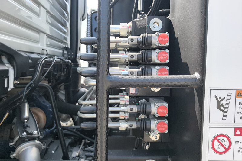 ● Le camion compacteur à chargeur arrière Shacman utilise des distributeurs électrohydrauliques et un système de commande programmable par automate programmable (PLC), combinant ainsi les avantages des commandes électroniques et hydrauliques. Cette commande électrohydraulique intégrée résout efficacement les problèmes d'interface entre les systèmes hydrauliques et électriques, améliorant ainsi la fiabilité opérationnelle.