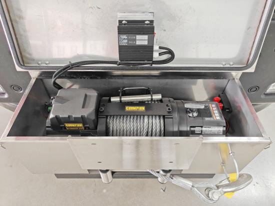 Avec rainure anti-pluie sur le dessus, barre de type levier, poignée de verrouillage, sangle de traction, siège fixe à deux points, lumière LED et capteurs. |