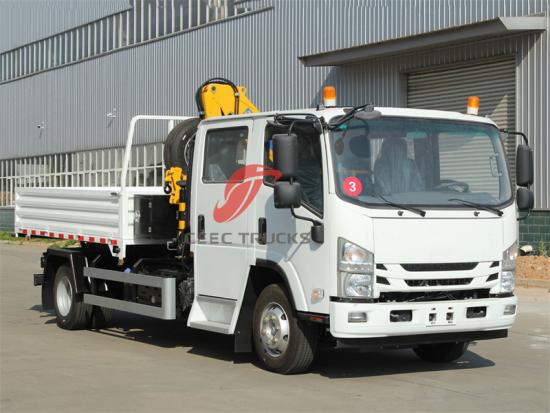 Èmeet La grue est un camion puissant et bien conçu. Elle est équipée Isuzu moteur diesel de marque avec une forte puissance de190HP, capable de répondre à divers besoins professionnels. La cabine peut accueillir trois personnes et est équipée de la climatisation et du chauffage, offrant au conducteur un environnement de conduite confortable. La partie supérieure de la cabineIsuzu NPR tombereaupliant grue à flèche avec une capacité de levage maximale de3 tonnes et un plein52Rotation de 0°.